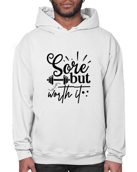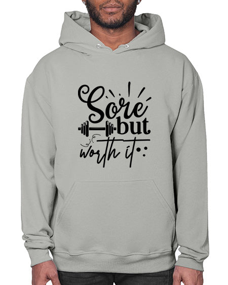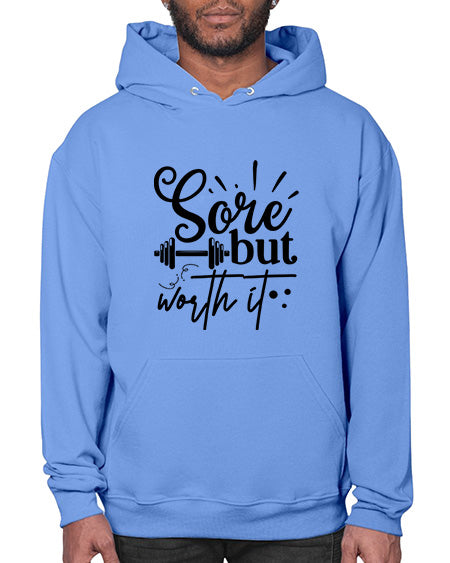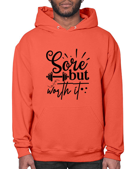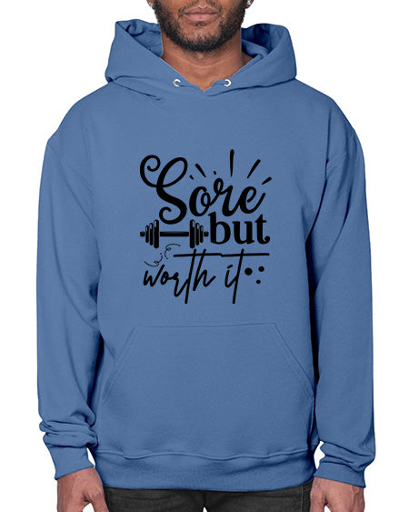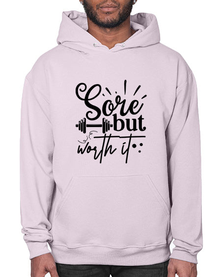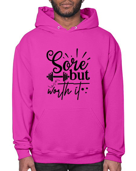 sore but worth it 70# - gym - Hoodie Unisex, machine washable, front pouch pocket - 8 oz, 50% cotton/50% polyester NuBlendŽ preshrunk fleece