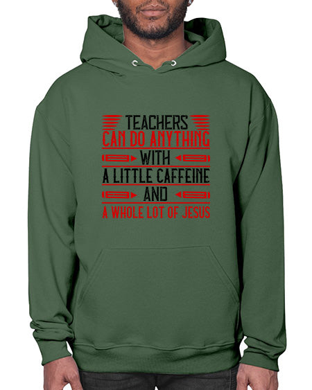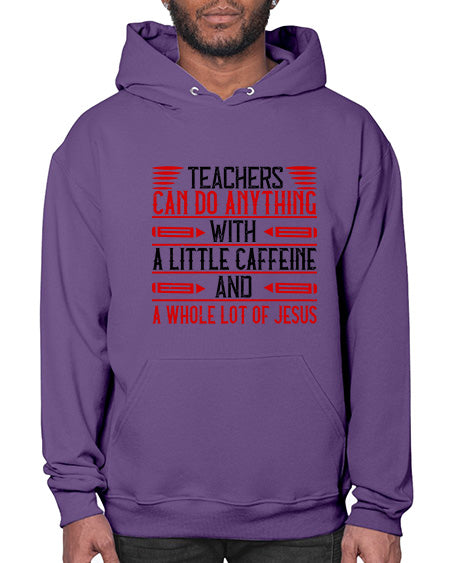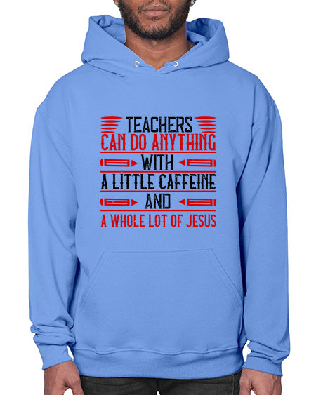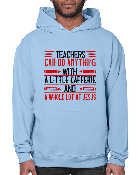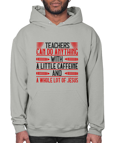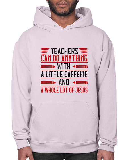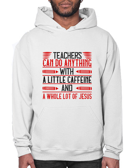 Teachers Can Do Anything With A Little Caffeine And A Whole Lot Of Jesus Style 1472# - teacher - Hoodie Unisex, machine washable, front pouch pocket - 8 oz, 50% cotton/50% polyester NuBlendŽ preshrunk fleece