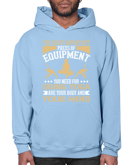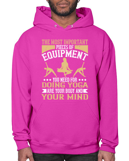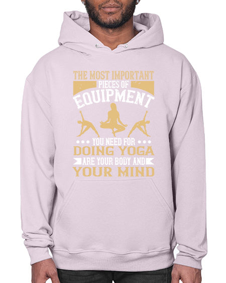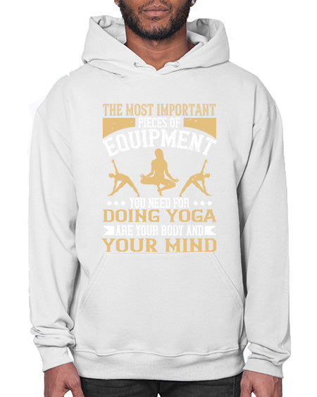 the most important pieces of equipment you need for doing yoga are your body and your mind 556# - yoga - Hoodie Unisex, machine washable, front pouch pocket - 8 oz, 50% cotton/50% polyester NuBlendŽ preshrunk fleece