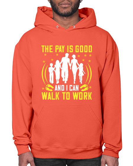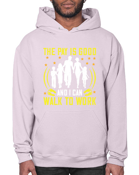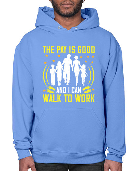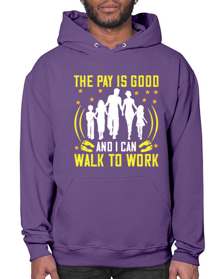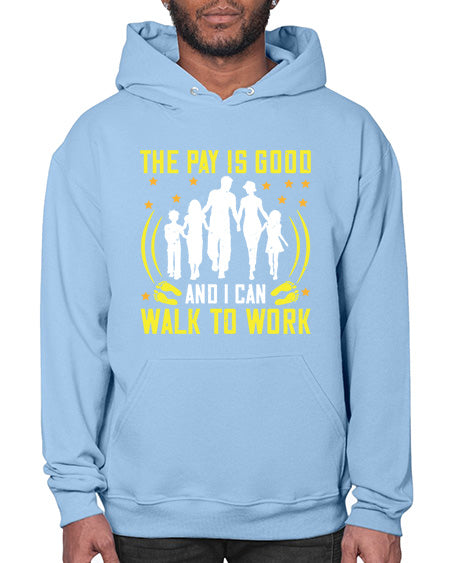 the pay is good and i can walk to work 559# - walking - Hoodie Unisex, machine washable, front pouch pocket - 8 oz, 50% cotton/50% polyester NuBlendŽ preshrunk fleece
