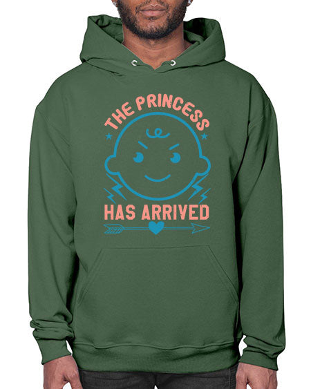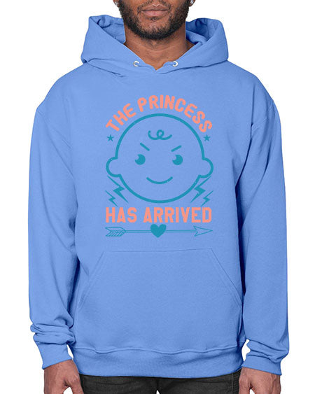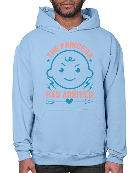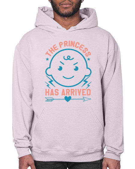 The princess has arrived Style 225# - baby shower - Hoodie Unisex, machine washable, front pouch pocket - 8 oz, 50% cotton/50% polyester NuBlendŽ preshrunk fleece