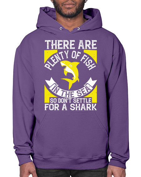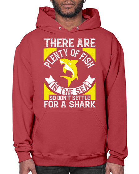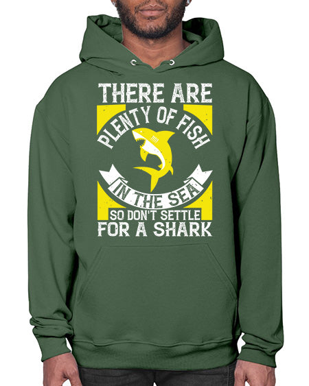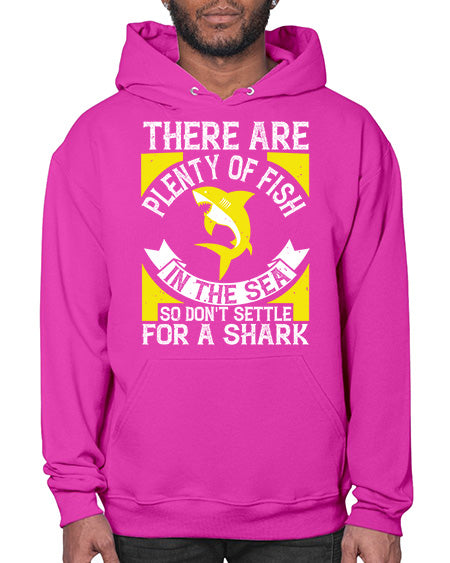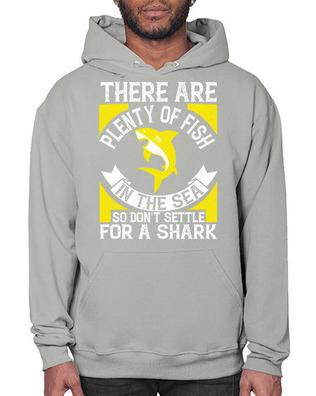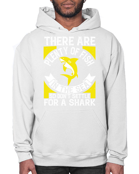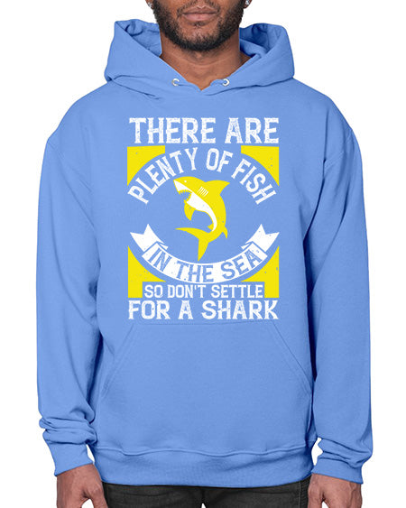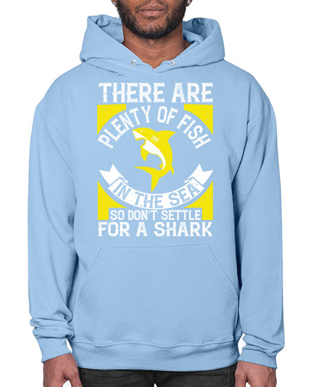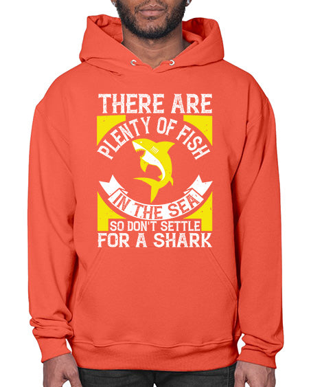 There are plenty of fish in the sea so dont settle for a shark Style 16# - shark-fish - Hoodie Unisex, machine washable, front pouch pocket - 8 oz, 50% cotton/50% polyester NuBlendŽ preshrunk fleece