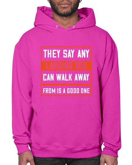 they say any landing you can walk away from is a good one 571# - walking - Hoodie Unisex, machine washable, front pouch pocket - 8 oz, 50% cotton/50% polyester NuBlendŽ preshrunk fleece