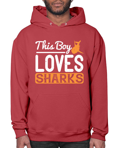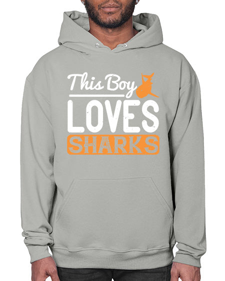 this boy loves sharks Style 14# - shark-fish - Hoodie Unisex, machine washable, front pouch pocket - 8 oz, 50% cotton/50% polyester NuBlendŽ preshrunk fleece