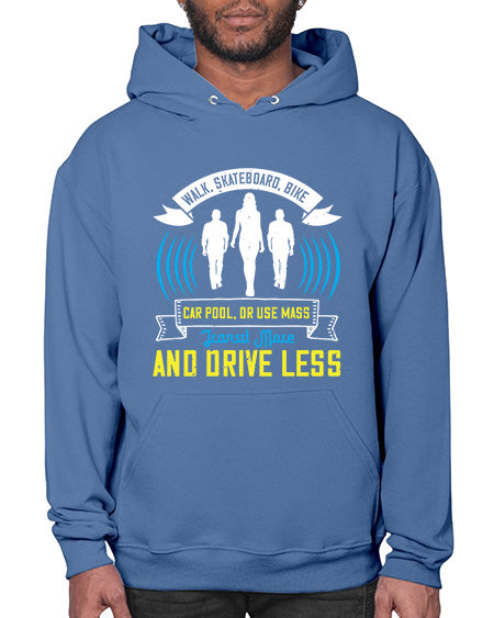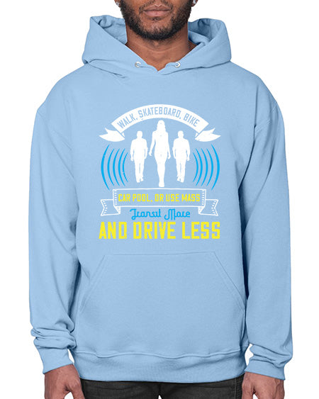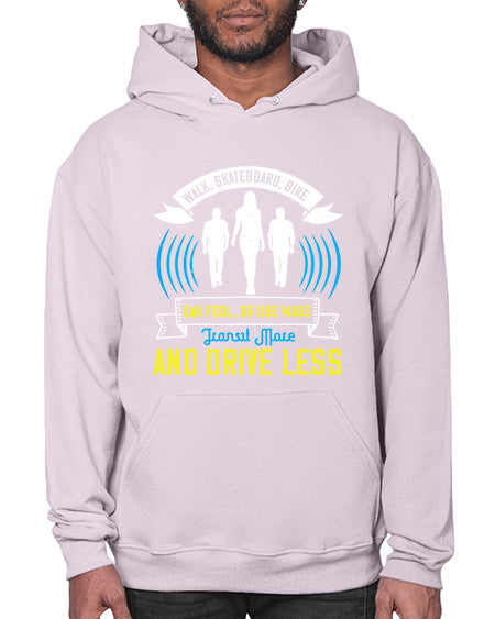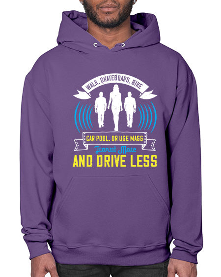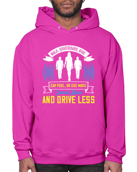 walk skateboard bike car pool or use mass transit more and drive less 594# - walking - Hoodie Unisex, machine washable, front pouch pocket - 8 oz, 50% cotton/50% polyester NuBlendŽ preshrunk fleece