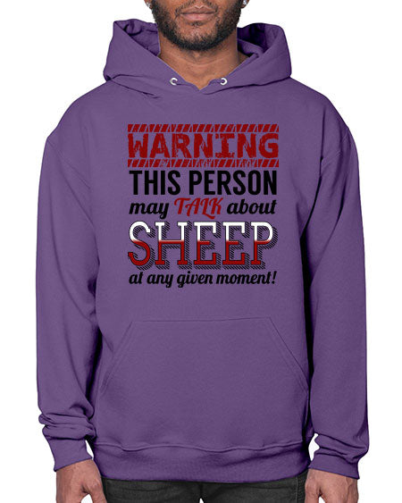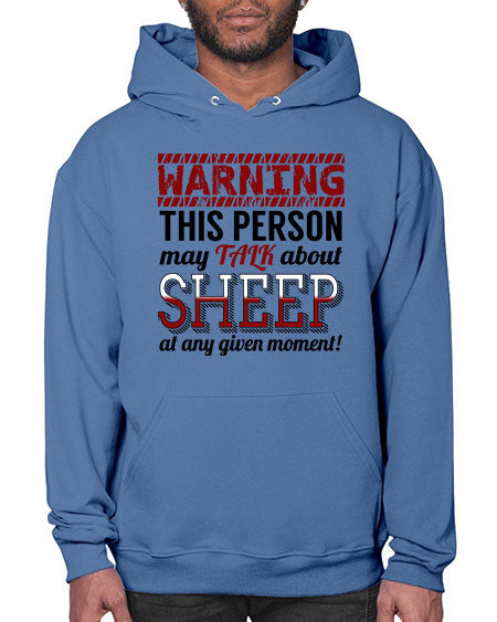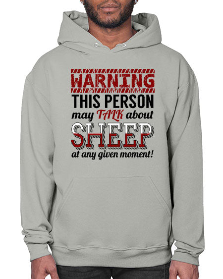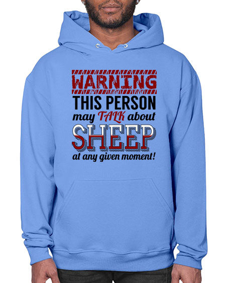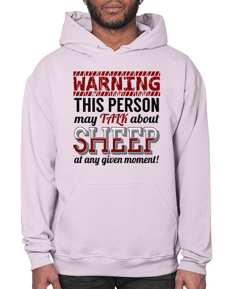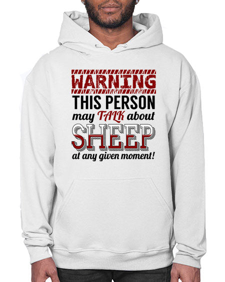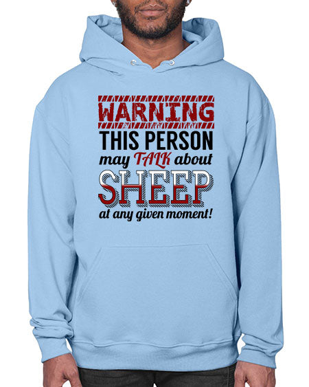 warning this person may talk about - sheep - Hoodie Unisex, machine washable, front pouch pocket - 8 oz, 50% cotton/50% polyester NuBlendŽ preshrunk fleece