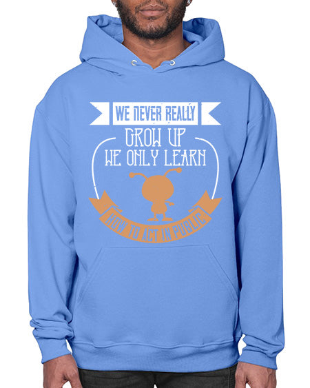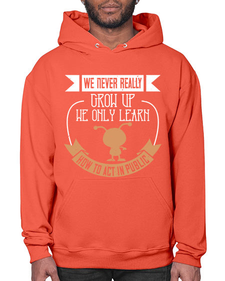 We never really grow up we only learn how to act in public 107# - graphic - Hoodie Unisex, machine washable, front pouch pocket - 8 oz, 50% cotton/50% polyester NuBlendŽ preshrunk fleece