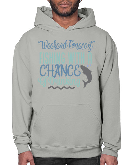 weekend forecast fishing with a chance of drinking 91# - shark-fish - Hoodie Unisex, machine washable, front pouch pocket - 8 oz, 50% cotton/50% polyester NuBlendŽ preshrunk fleece