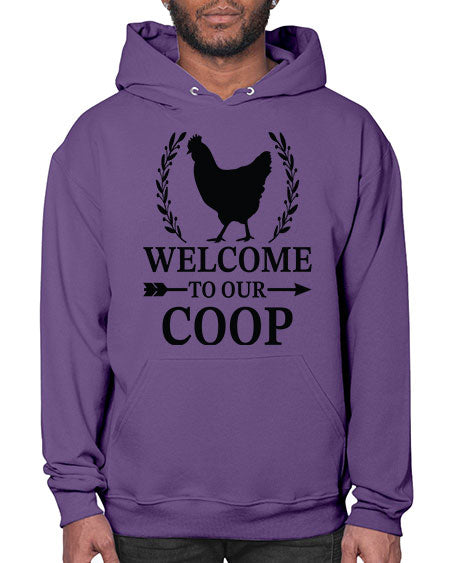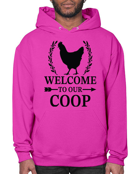 Welcome To Our Coop - chicken - Hoodie Unisex, machine washable, front pouch pocket - 8 oz, 50% cotton/50% polyester NuBlendŽ preshrunk fleece