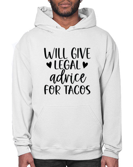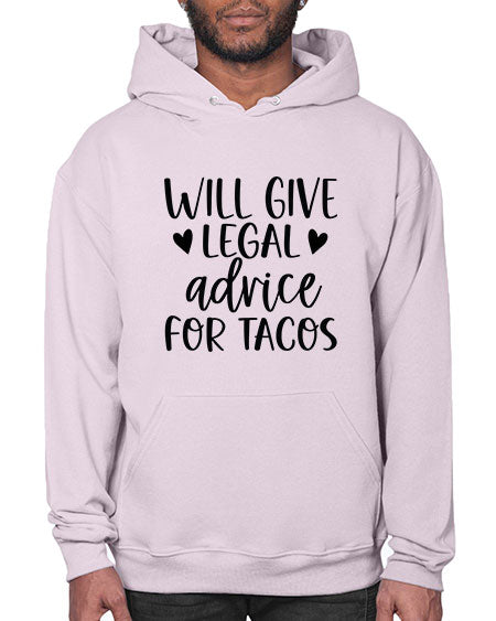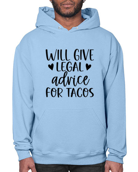 will give legal advice for tacos 1645# - lawyer - Hoodie Unisex, machine washable, front pouch pocket - 8 oz, 50% cotton/50% polyester NuBlendŽ preshrunk fleece