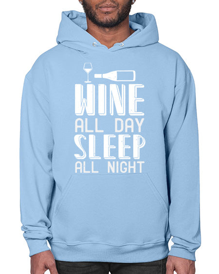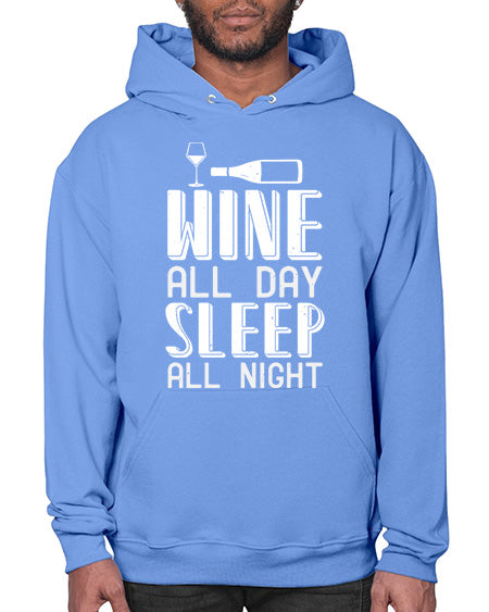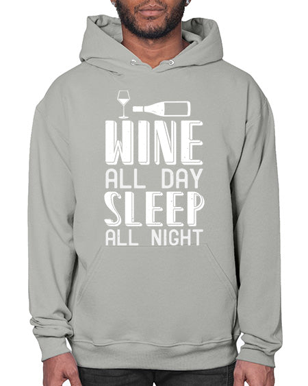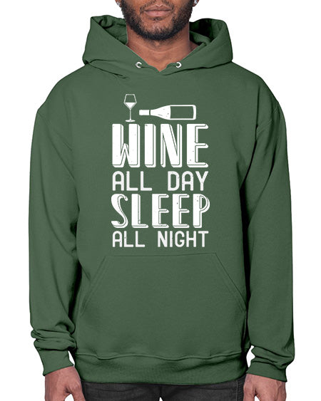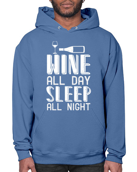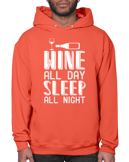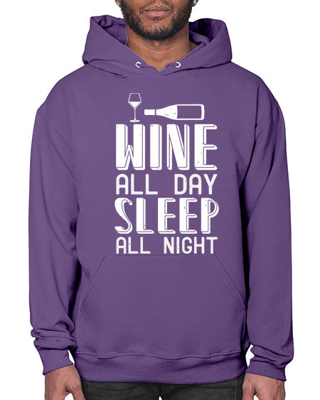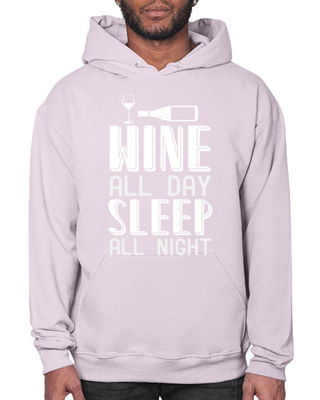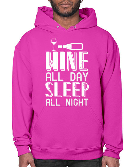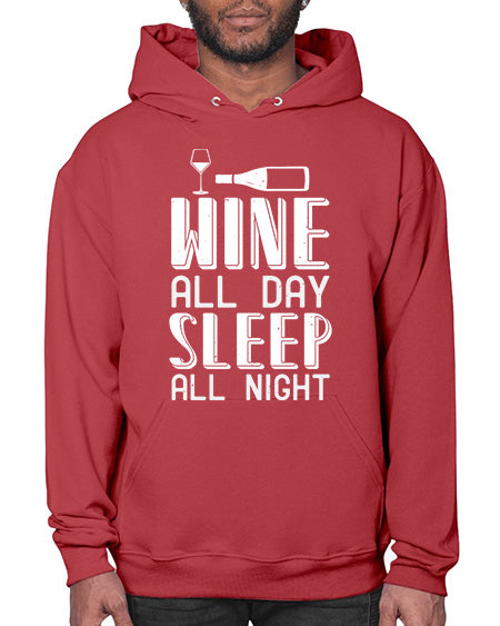 wine all day sleep all night 479# - wine - Hoodie Unisex, machine washable, front pouch pocket - 8 oz, 50% cotton/50% polyester NuBlendŽ preshrunk fleece