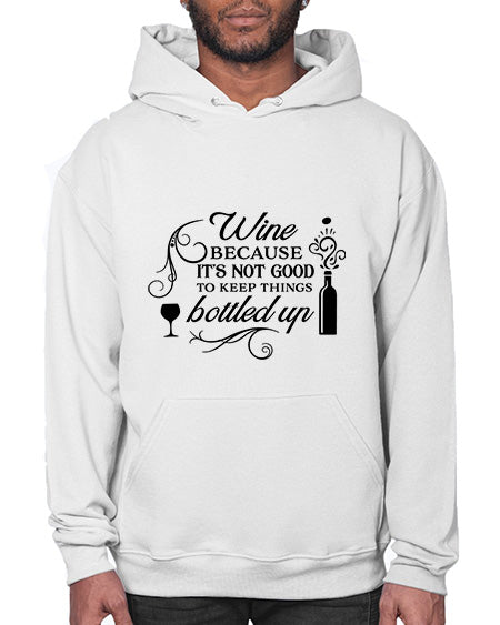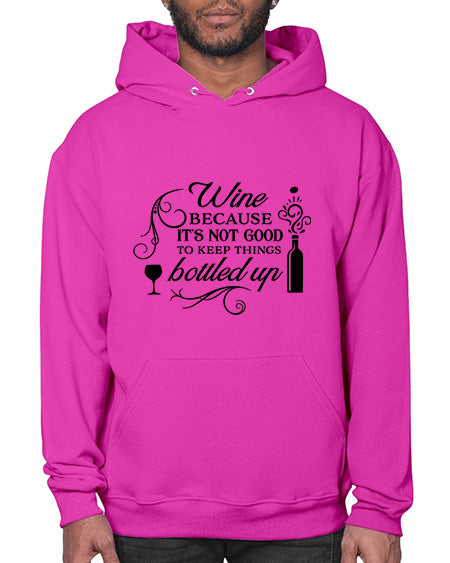 wine because it s not good to keep things bottled up 1729# - wine - Hoodie Unisex, machine washable, front pouch pocket - 8 oz, 50% cotton/50% polyester NuBlendŽ preshrunk fleece