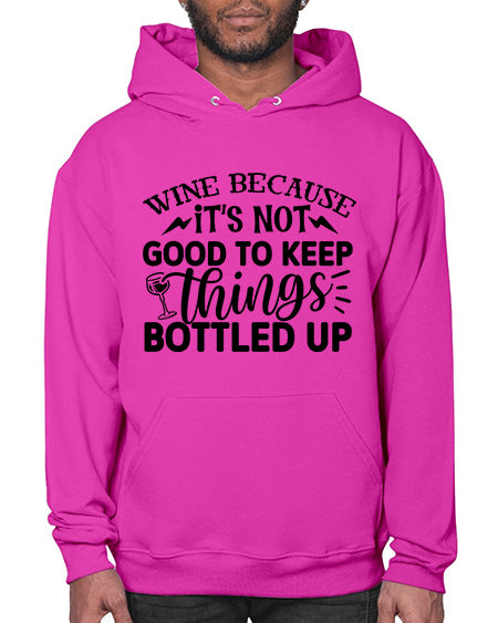 Wine because its not good to keep things bottled up 1730# - wine - Hoodie Unisex, machine washable, front pouch pocket - 8 oz, 50% cotton/50% polyester NuBlendŽ preshrunk fleece