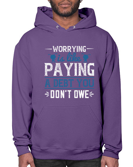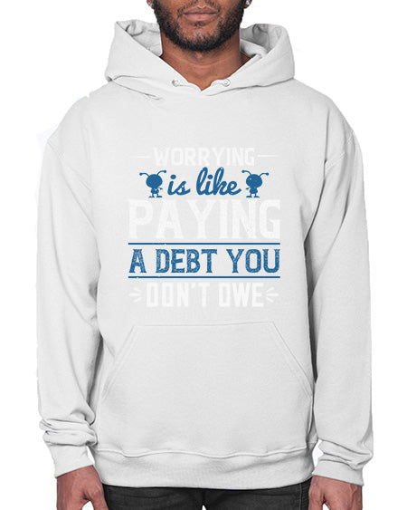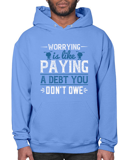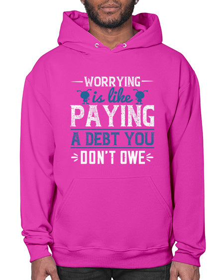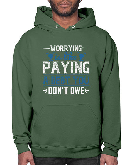 Worrying is like paying a debt you dont owe 110# - graphic - Hoodie Unisex, machine washable, front pouch pocket - 8 oz, 50% cotton/50% polyester NuBlendŽ preshrunk fleece