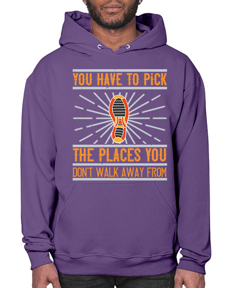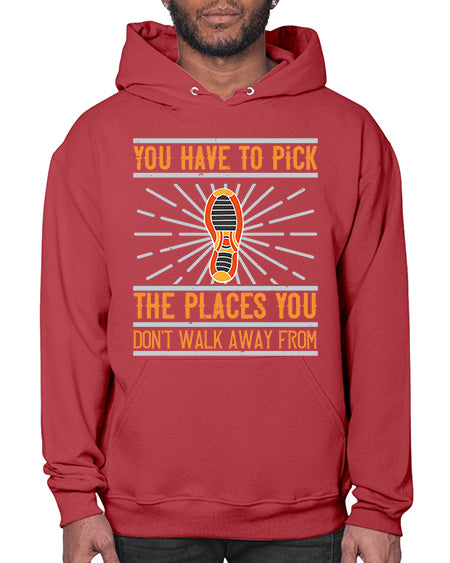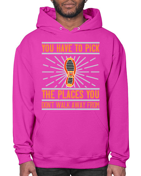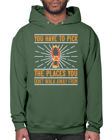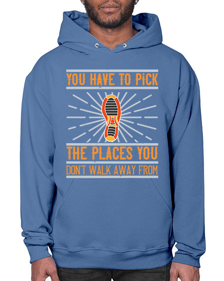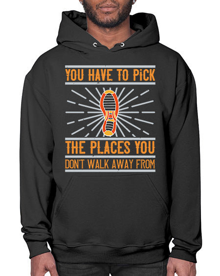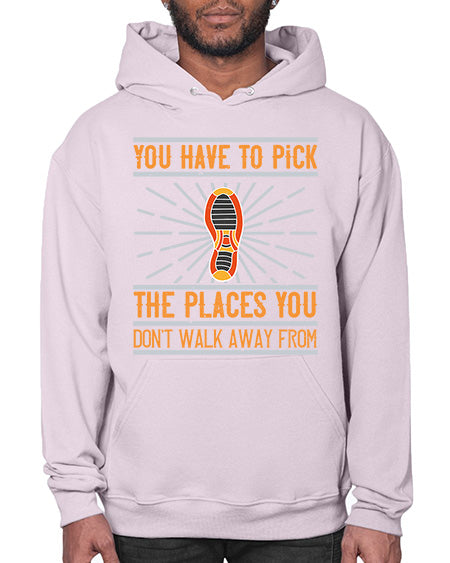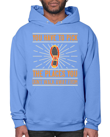 you have to pick the places you dont walk away from 653# - walking - Hoodie Unisex, machine washable, front pouch pocket - 8 oz, 50% cotton/50% polyester NuBlendŽ preshrunk fleece