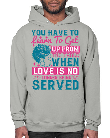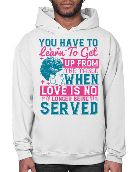 Youve got to learn to leave the table when loves no longer being served Style 41# - black afro- Hoodie