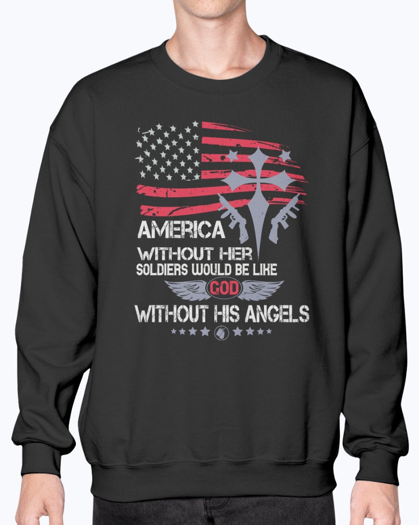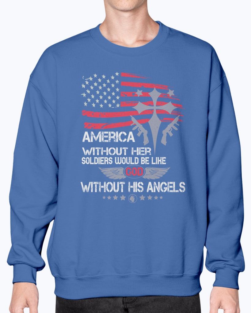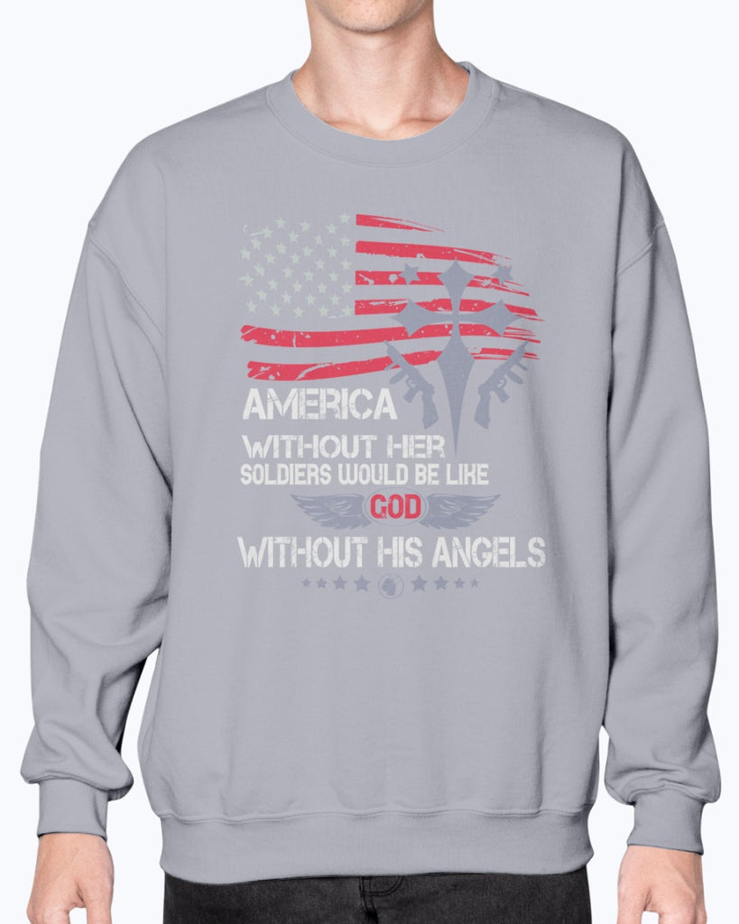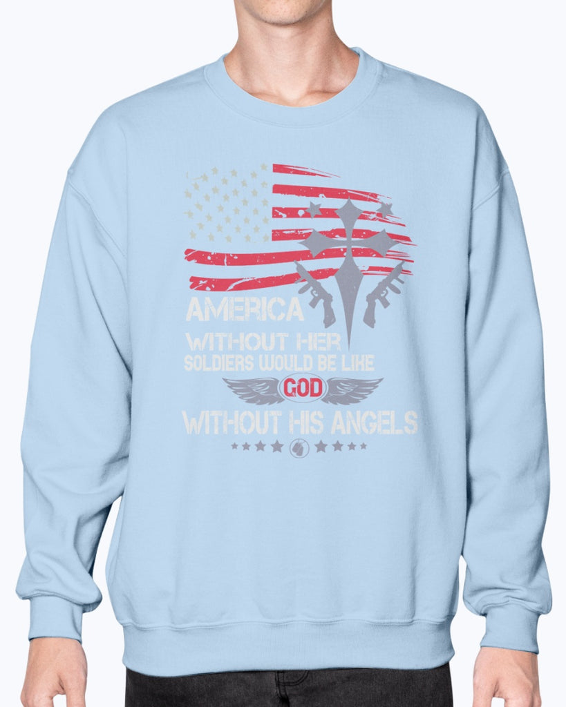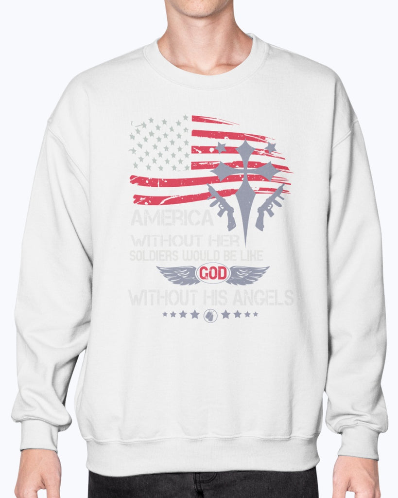 America without her Soldiers would be like God without His angels- Military- Sweatshirt - Crew