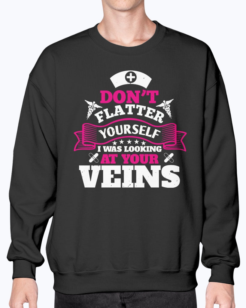 Don't flatter yourself, I was looking at your veins - Nurse - Sweatshirt - Crew