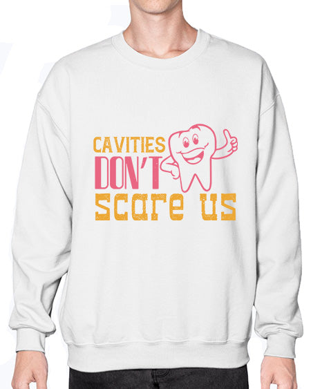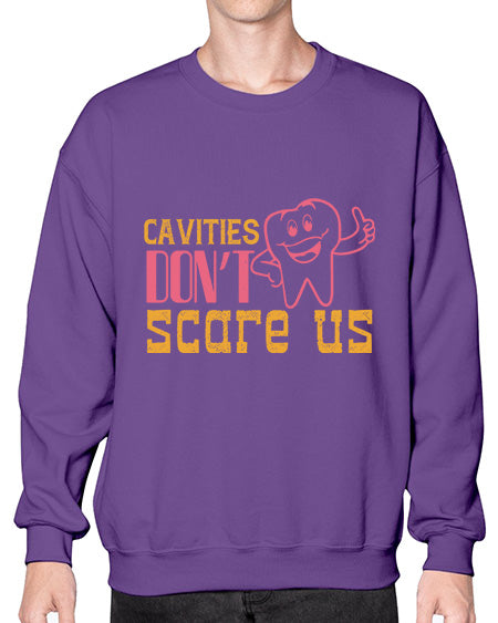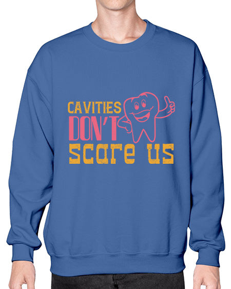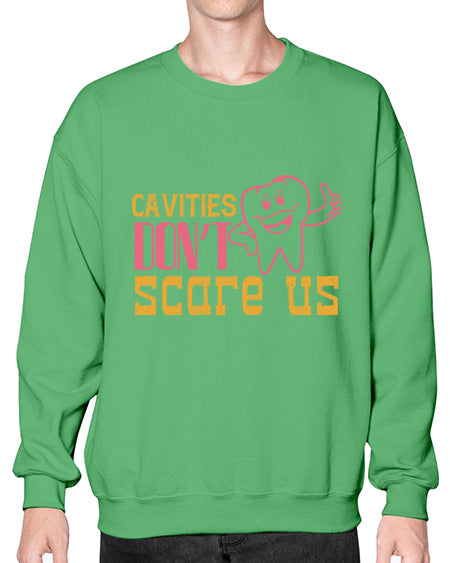 Cavities dont scare us Style 84# - dentist - Crew Note: There is a 2 - 4 day creation time, which may delay shipping. Details- Preshrunk fleece knit