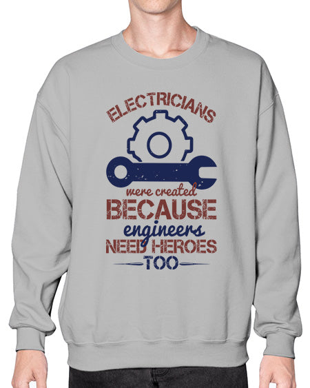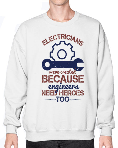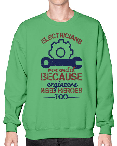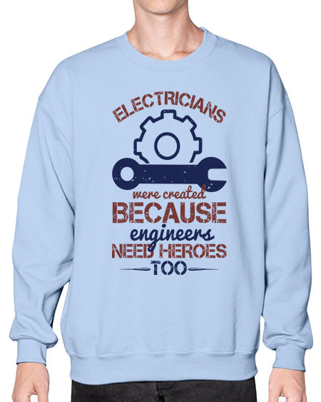 electricians were created beacuse ever engineers need heroes too Style 141# - engineer- Sweatshirt - Crew