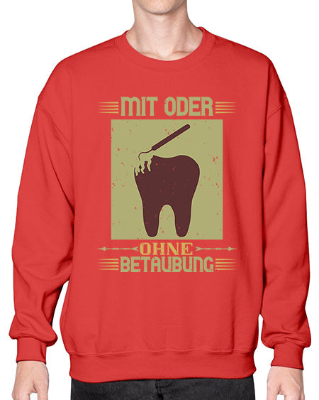Mit oder ohne betaubung Style 287# - dentist - Crew Note: There is a 2 - 4 day creation time, which may delay shipping. Details- Preshrunk fleece knit