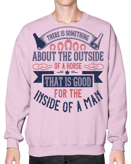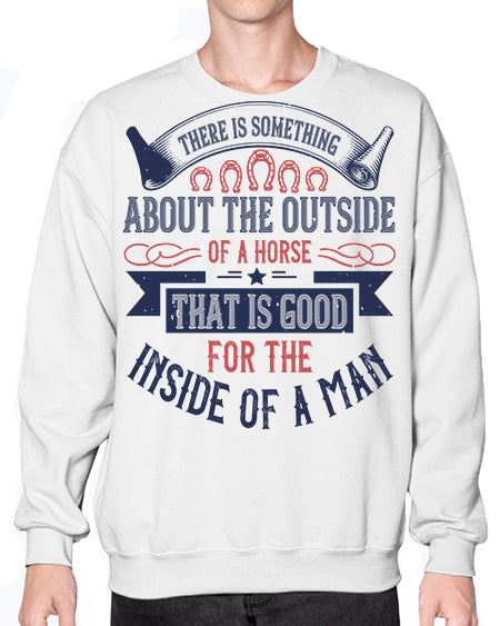 There is something about the outside of a horse that is good for the inside of a man Style 16# - horse - Crew Note: There is a 2 - 4 day creation time, which may delay shipping. Details- Preshrunk fleece knit