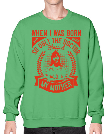 When I was born I was so ugly the doctor slapped my mother Style 472# - medical- Sweatshirt - Crew