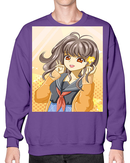 A beautiful and happy girl back to school 90# - anime- Sweatshirt - Crew