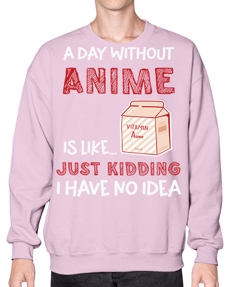A Day Without Anime Is Anime 186# - Sub - Crew Note: There is a 2 - 4 day creation time, which may delay shipping. Details- Preshrunk fleece knit
