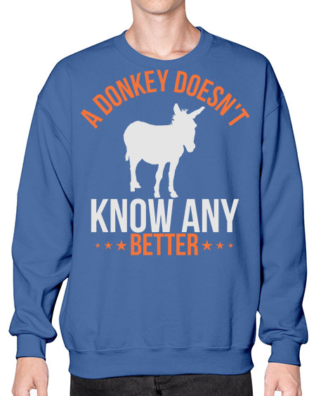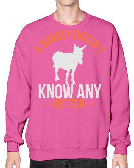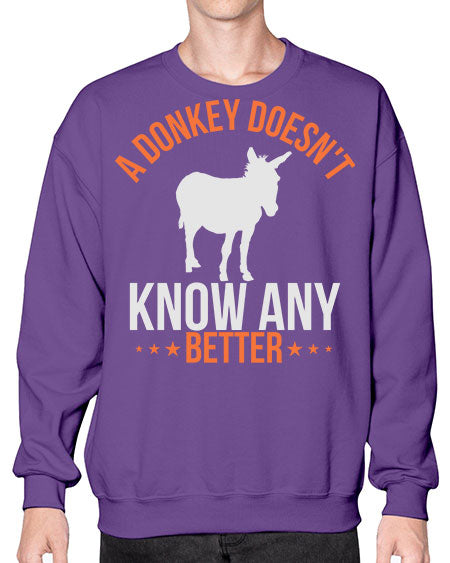 a donkey doesnt know any better Style 5# - donkey - Crew Note: There is a 2 - 4 day creation time, which may delay shipping. Details- Preshrunk fleece knit