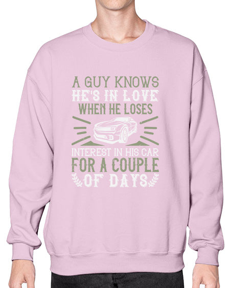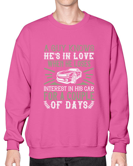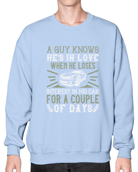 A guy knows hes in love when he loses interest in his car for a couple of days 72# - car- Sweatshirt - Crew