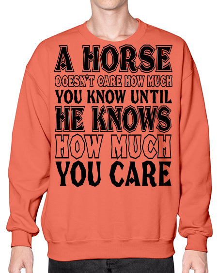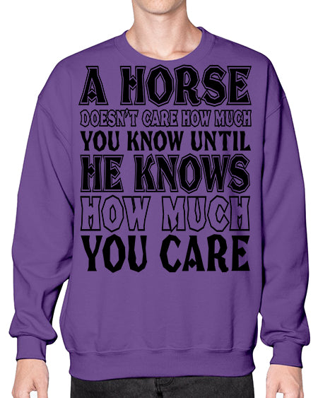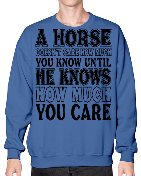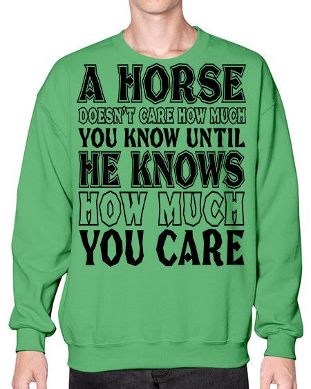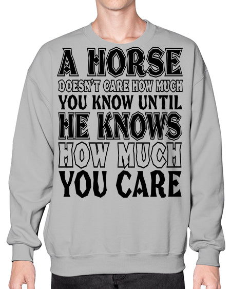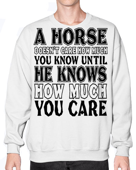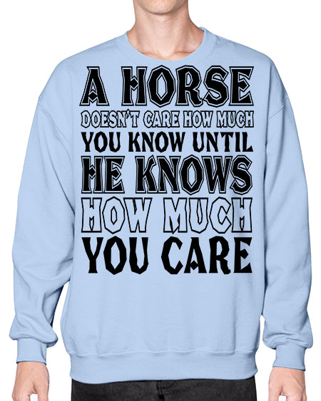 a horse doesnt care how much you know until - horse- Sweatshirt - Crew