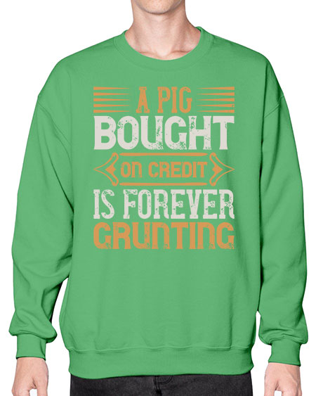 A pig bought on credit is forever grunting Style 105# - pig- Sweatshirt - Crew