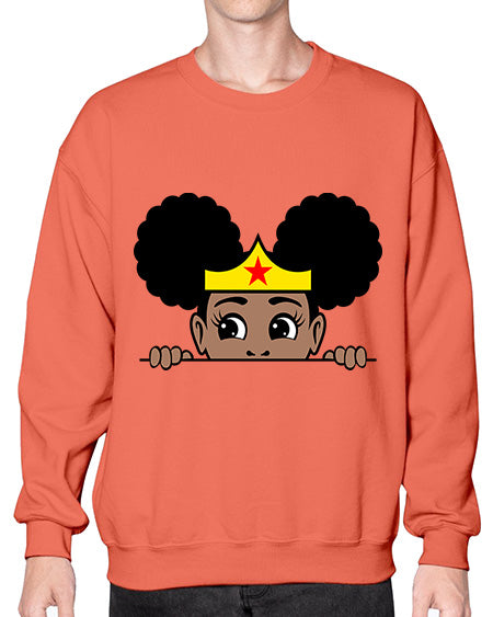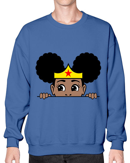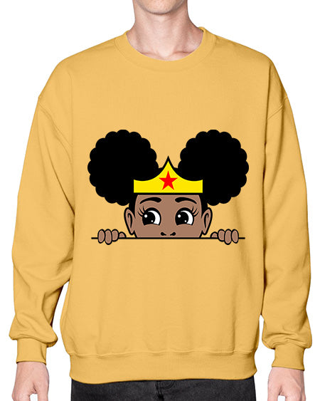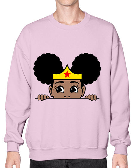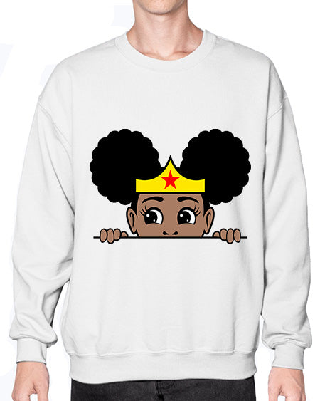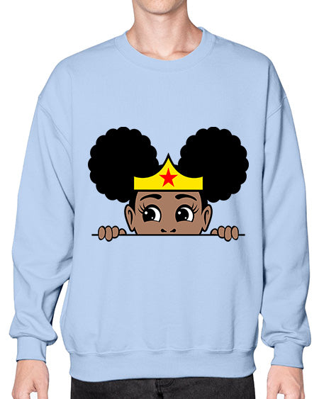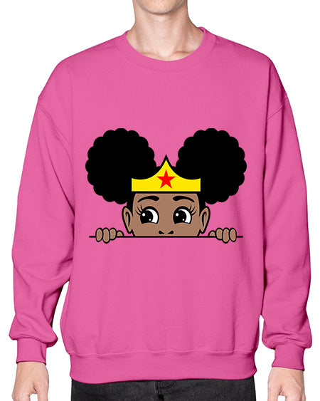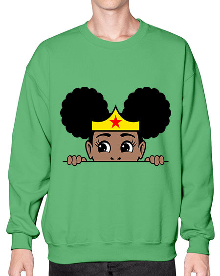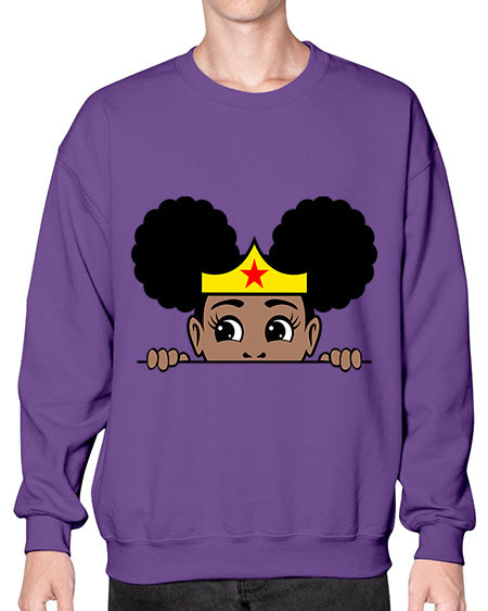 afro puff wonder woman girl peekaboo 84# - black girls or women- Sweatshirt - Crew