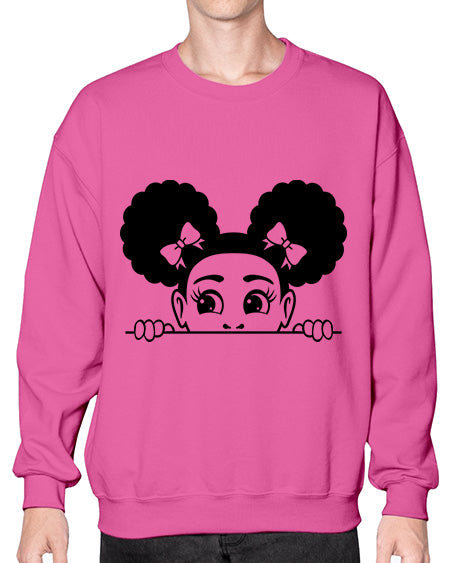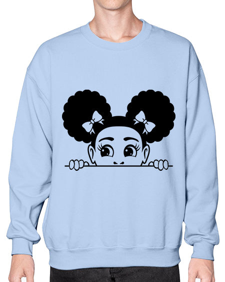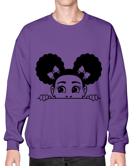 afro puffs girl peekaboo 81# - black girls or women- Sweatshirt - Crew