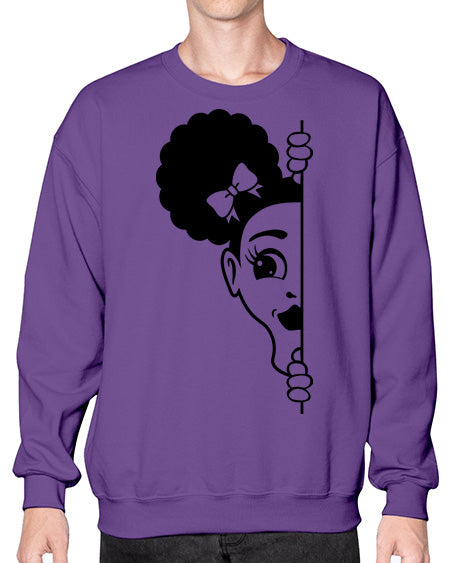 afro puffs girl peekaboo 82# - black girls or women- Sweatshirt - Crew