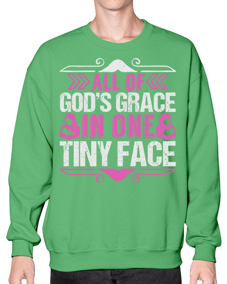 All of Gods Grace in one tiny Face Style 18# - babies - Crew Note: There is a 2 - 4 day creation time, which may delay shipping. Details- Preshrunk fleece knit