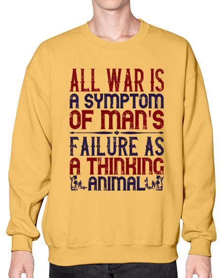 All war is a symptom of mans failure 227# - graphic - Crew Note: There is a 2 - 4 day creation time, which may delay shipping. Details- Preshrunk fleece knit