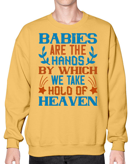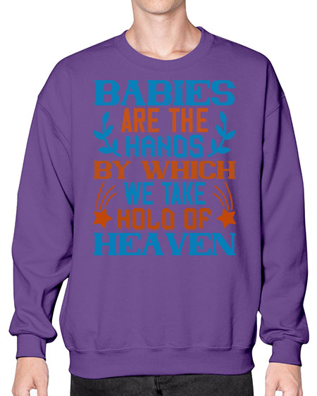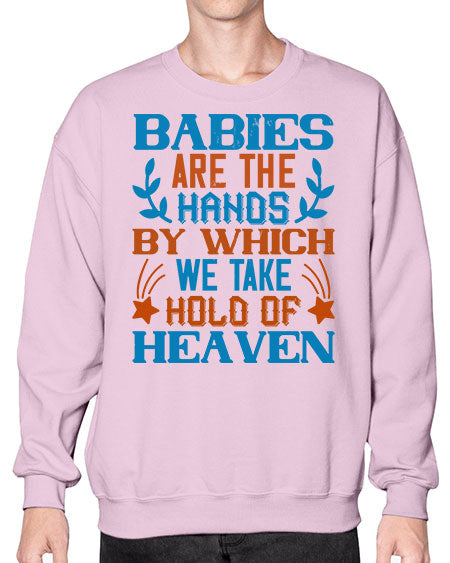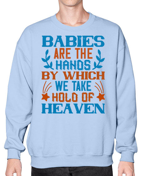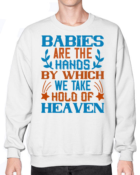 Babies are the hands by which we take hold of heaven Style 272# - babies - Crew Note: There is a 2 - 4 day creation time, which may delay shipping. Details- Preshrunk fleece knit