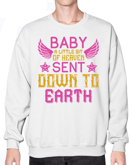 Baby A little bit of heaven sent down to earth Style 273# - babies - Crew Note: There is a 2 - 4 day creation time, which may delay shipping. Details- Preshrunk fleece knit