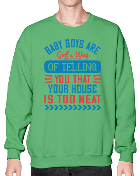 Baby boys are God’s way of telling you that your house is too neat Style 274# - babies - Crew Note: There is a 2 - 4 day creation time, which may delay shipping. Details- Preshrunk fleece knit
