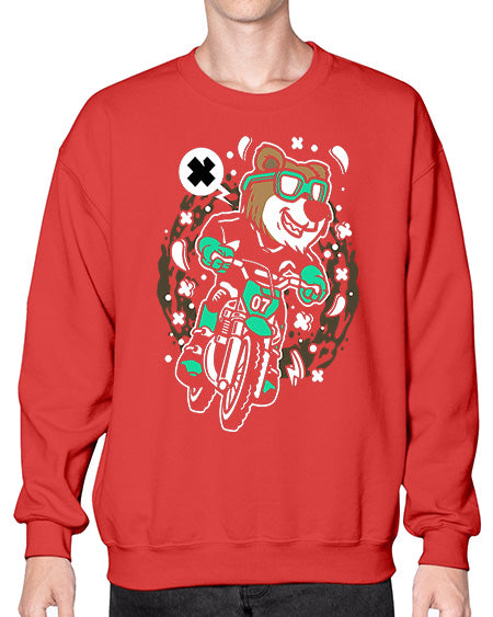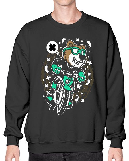 Bear motocross rider 15# - cartoon animals- Sweatshirt - Crew