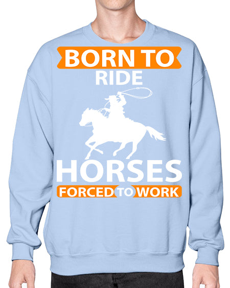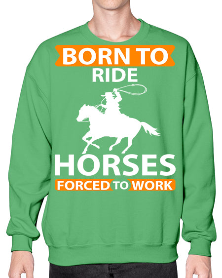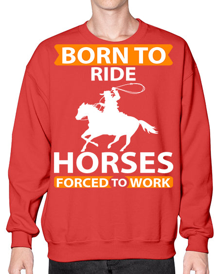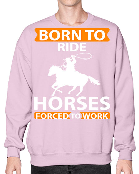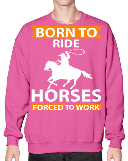 born to ride horses forced to work Style 6# - horse - Crew Note: There is a 2 - 4 day creation time, which may delay shipping. Details- Preshrunk fleece knit