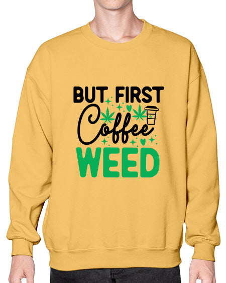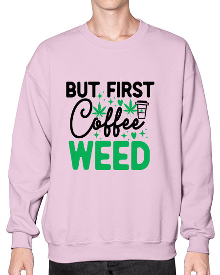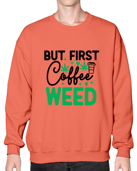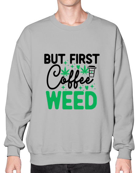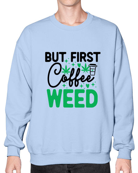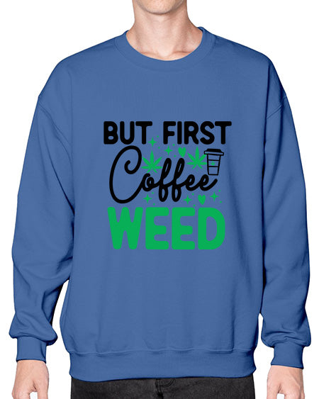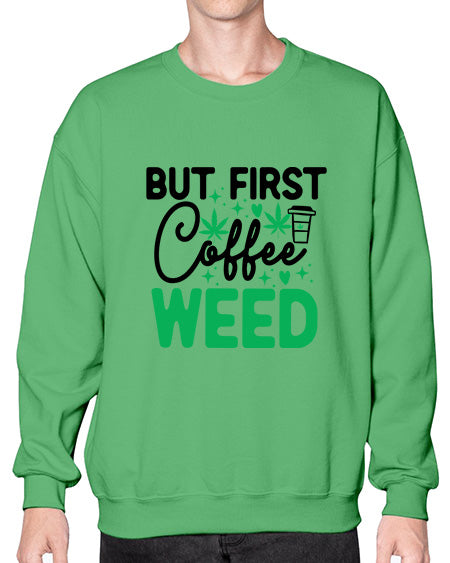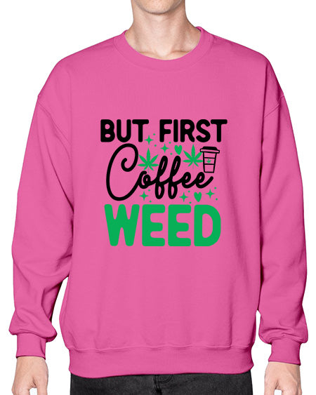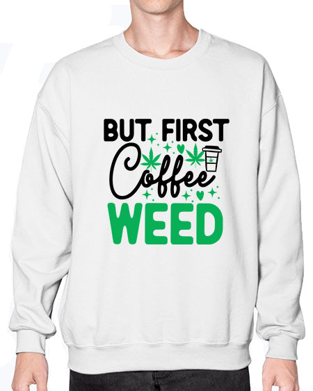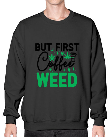 But First Coffee Weed 285# - graphic - Crew Note: There is a 2 - 4 day creation time, which may delay shipping. Details- Preshrunk fleece knit