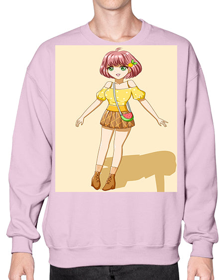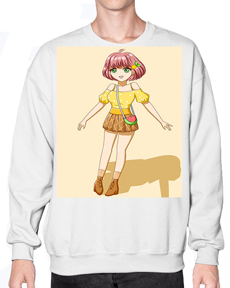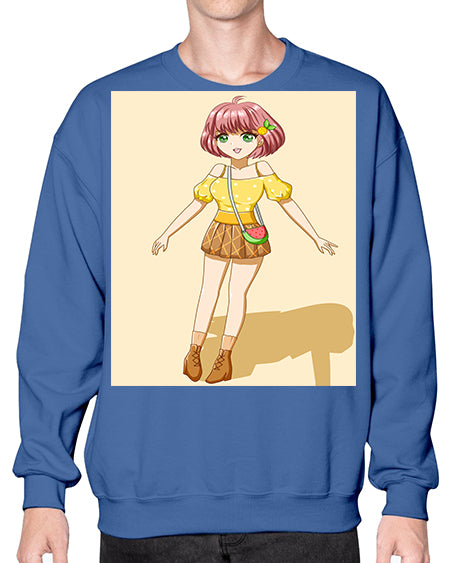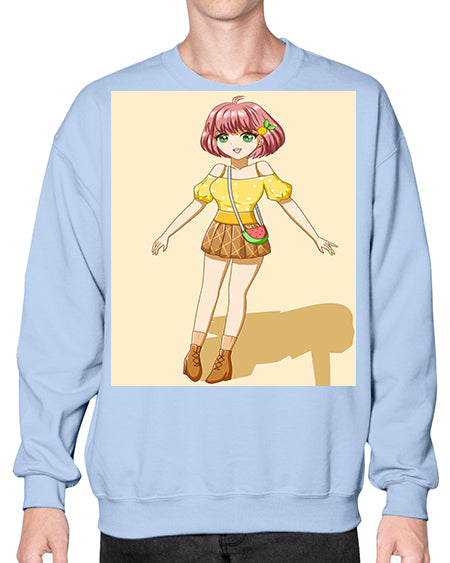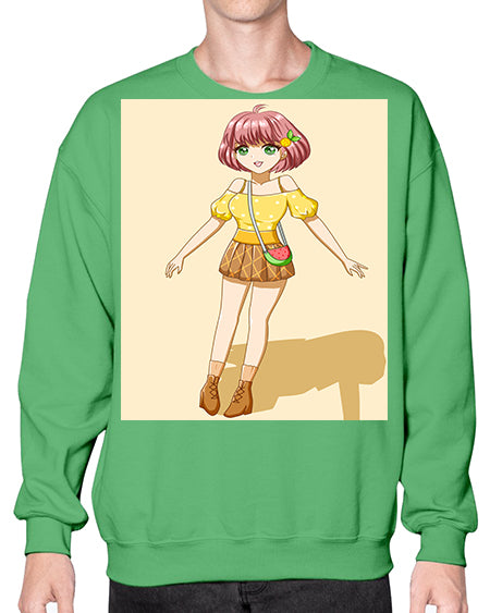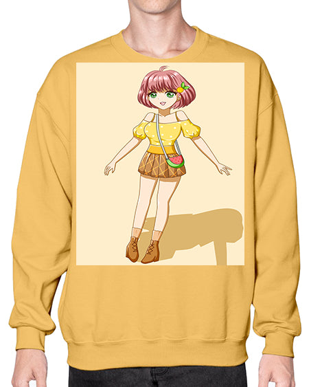 Cute and beautiful girl in summer with yellow dress 54# - anime- Sweatshirt - Crew