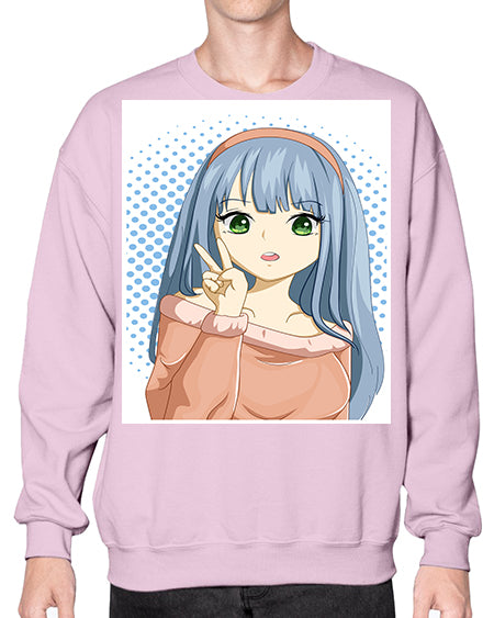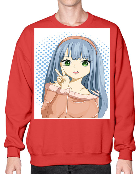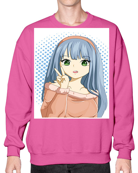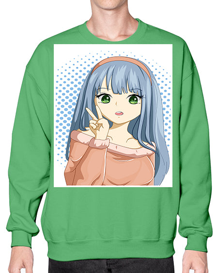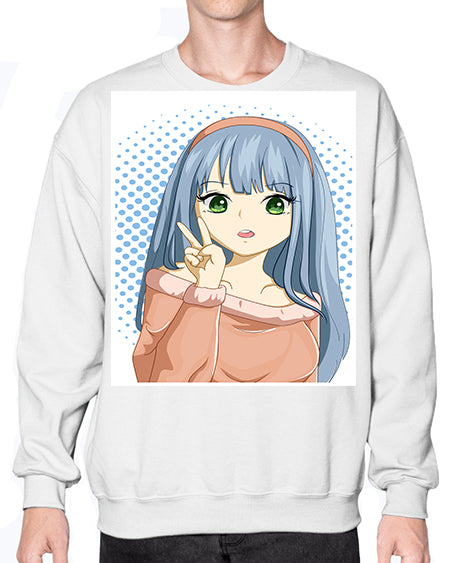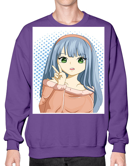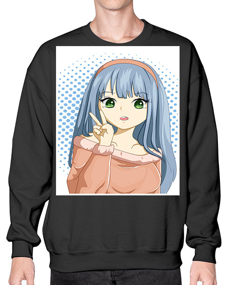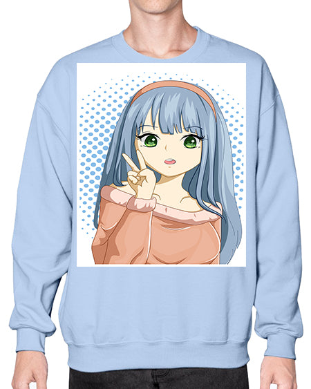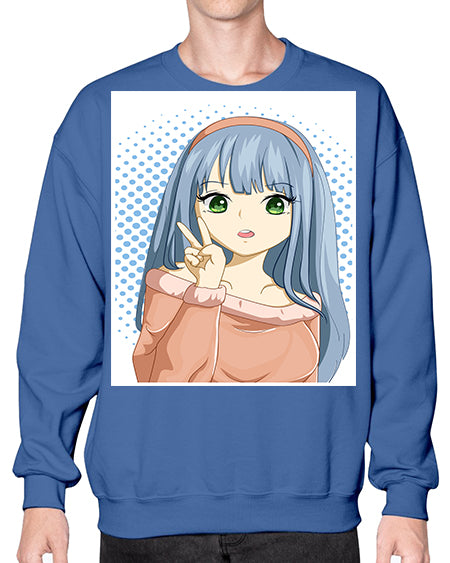 Cute and beautiful girl long blue hair 183# - anime- Sweatshirt - Crew