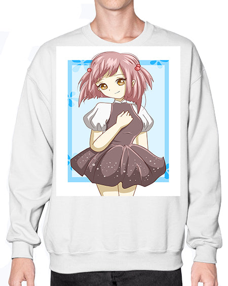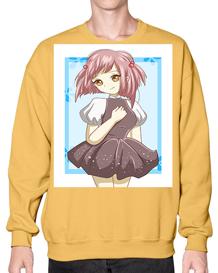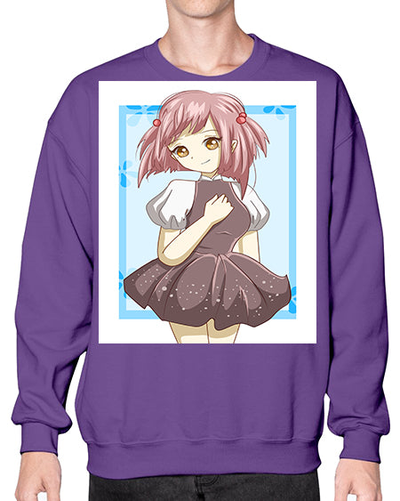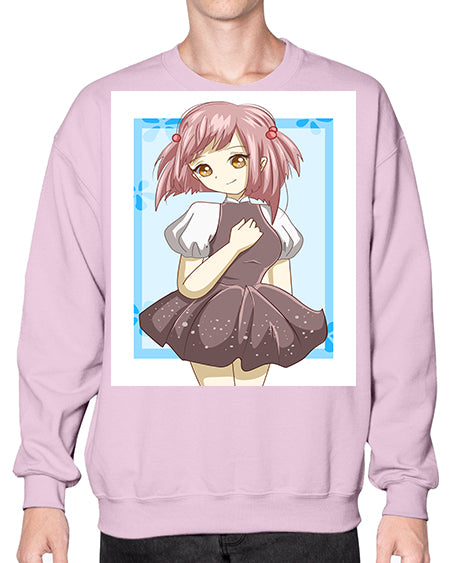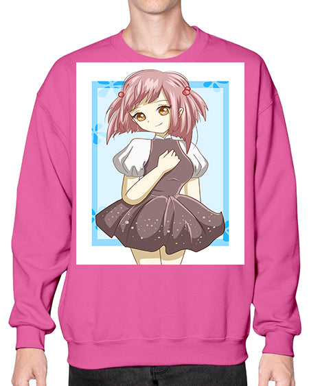 Cute and beautiful girl pink hair with dark pink dress 121# - anime- Sweatshirt - Crew