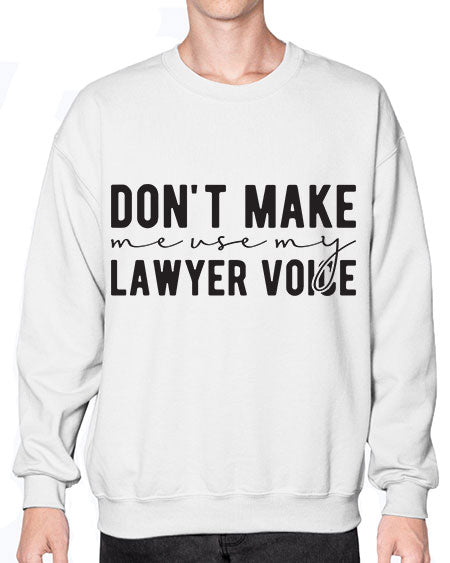 dont make me use my lawyer voice 718# - lawyer - Crew Note: There is a 2 - 4 day creation time, which may delay shipping. Details- Preshrunk fleece knit