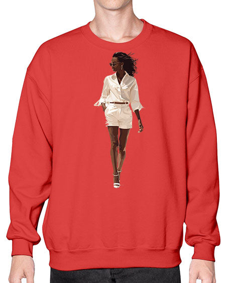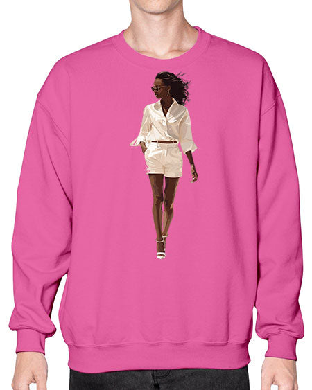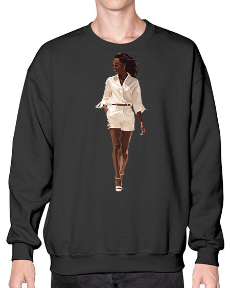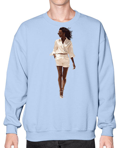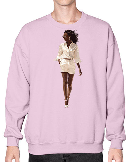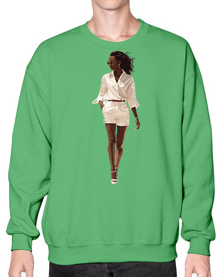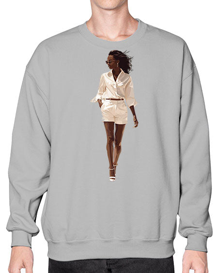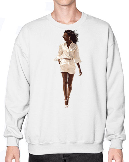 fashion girl in white 72# - fashion- Sweatshirt - Crew