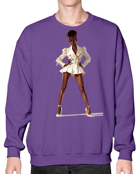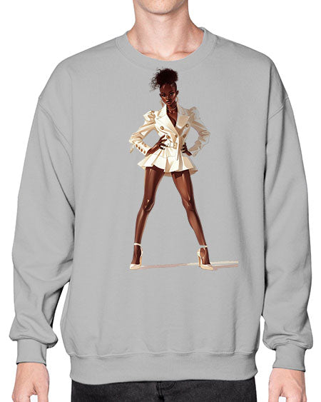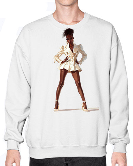 fashion girl in white 75# - fashion- Sweatshirt - Crew
